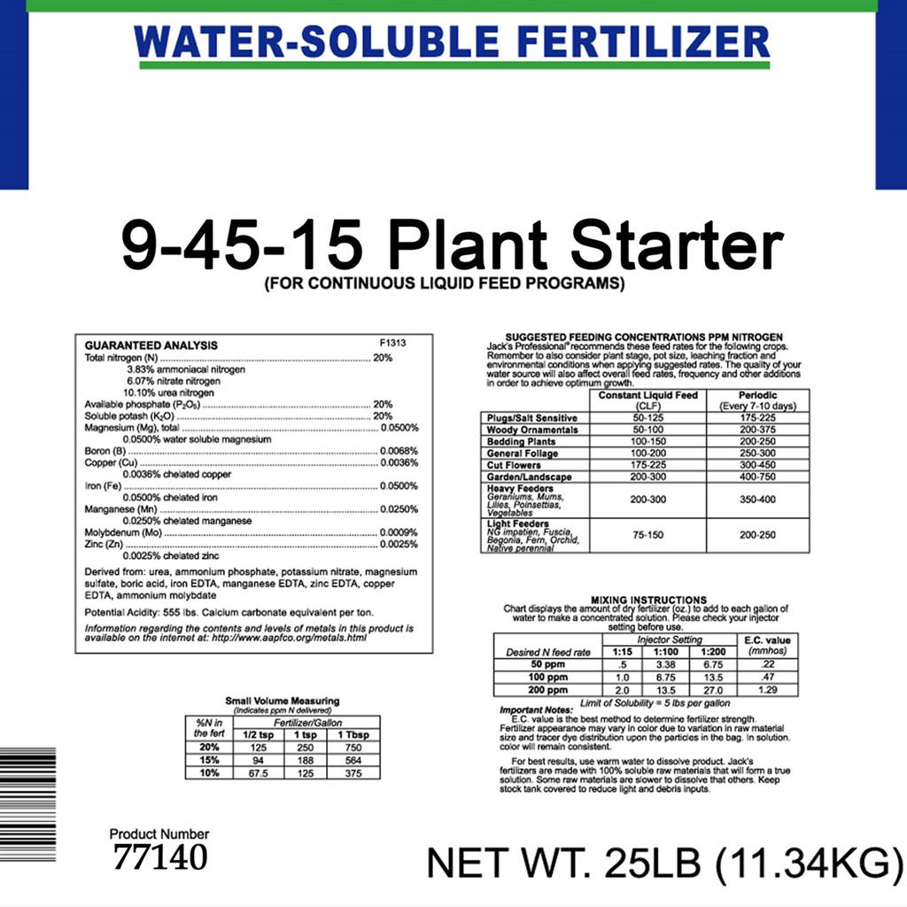 Jack S Fertilizer 9 45 15 Plant Starter Greenhouse Megastore
